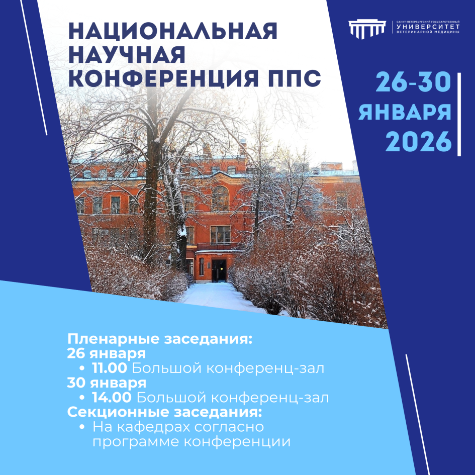 Ректорат Санкт-Петербургского государственного университета ветеринарной медицины приглашает Вас принять участие в работе национальной научной конференции профессорско-преподавательского состава, научных сотрудников и аспирантов СПбГУВМ
