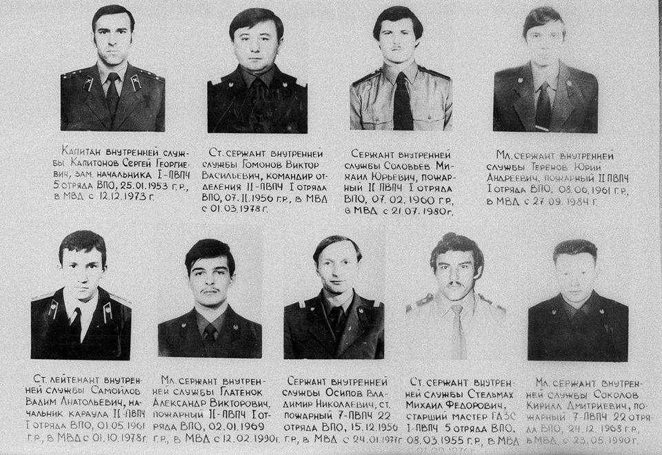 Самые большие потери в тот день понесла пожарная часть Nº11 Калининского района. Именно отсюда утром 23 февраля 1991 г. на вызов о пожаре в гостинице «Ленинград» выехал караул в составе: Гомонов Виктор Васильевич (1956 г.р.), Соловьев Михаил Юрьевич (1960 г.р.), Терехов Юрий Андреевич (1961 г.р.), Самойлов Вадим Анатольевич (1961 г.р.) и Глатенок Александр Викторович (1969 г.р.). Их имена навечно зачислены на вечную вахту в боевой журнал дежурств. И вместе с ними вечную вахту несут Капитонов Сергей Георгиевич (1-ПВПЧ), Осипов Владимир Николаевич (7- ПВПЧ), Стельмах Михаил Федорович (1-ПВПЧ), Соколов Кирилл Дмитриевич (7-ПВПЧ) и милиционер Александр Файкин.