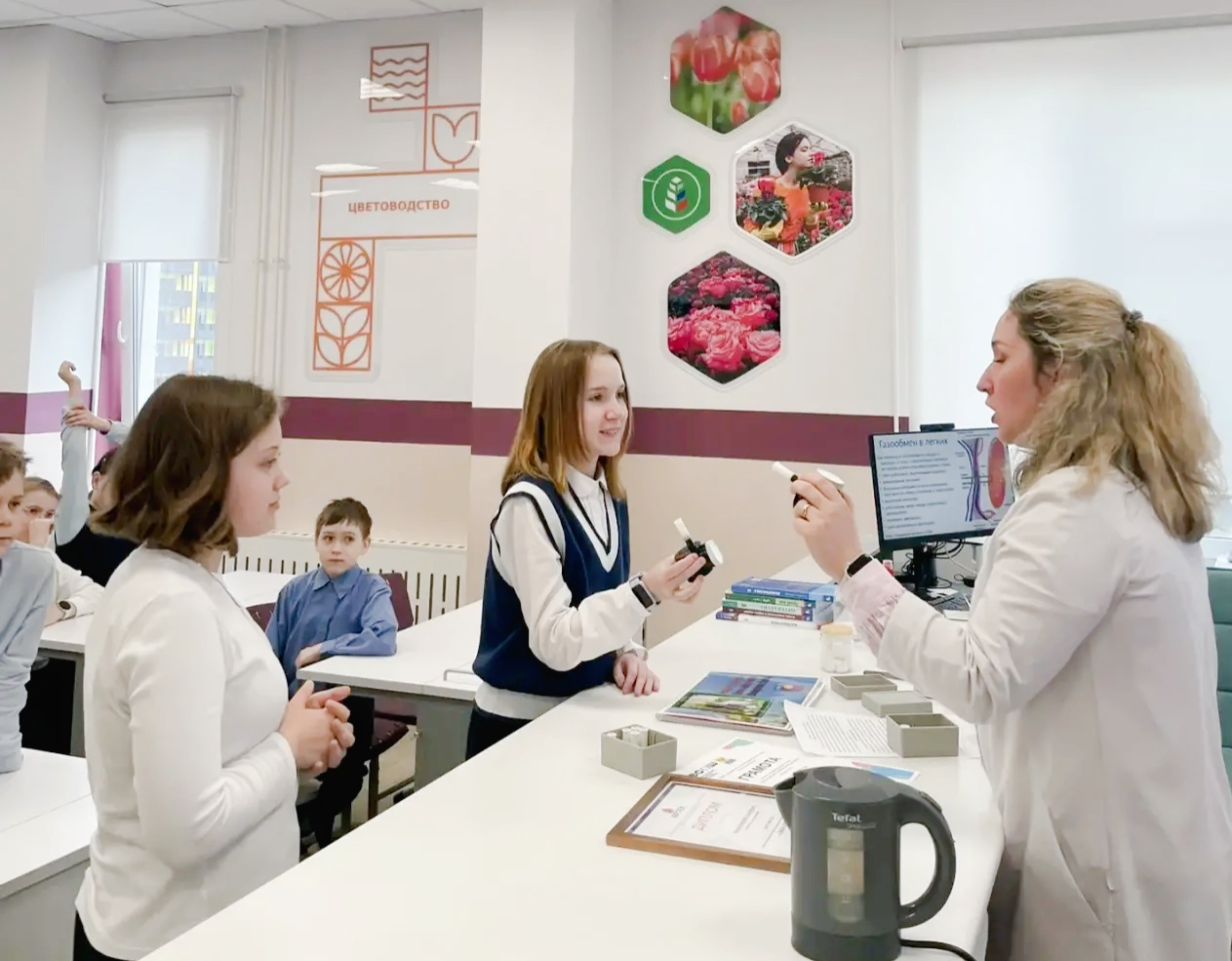 И, конечно, не обошлось без практики — ребята измерили жизненный объём своих лёгких.