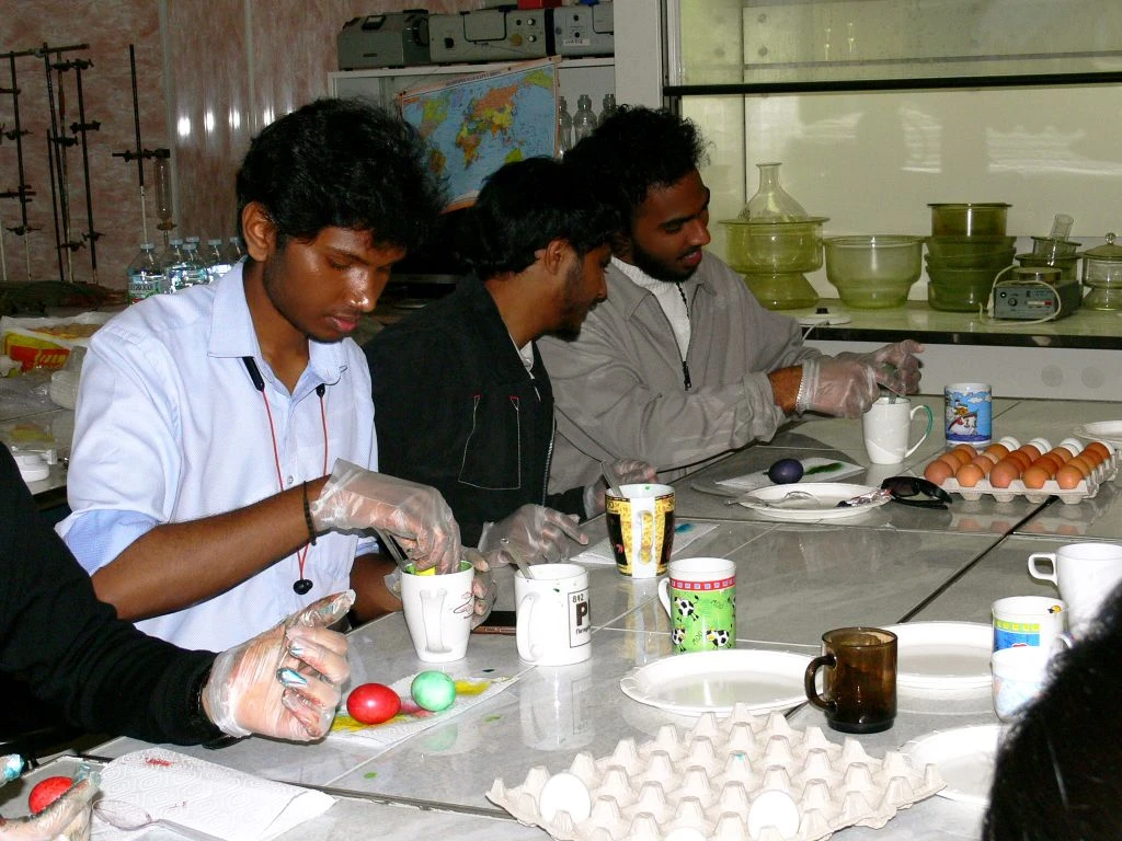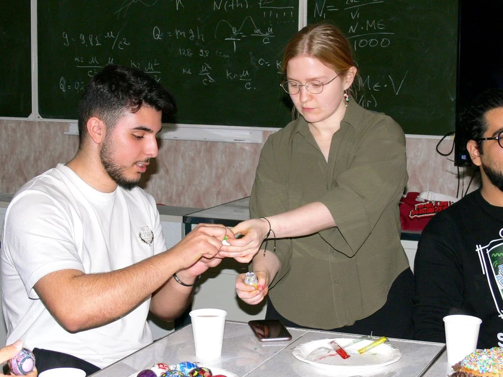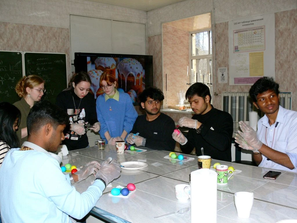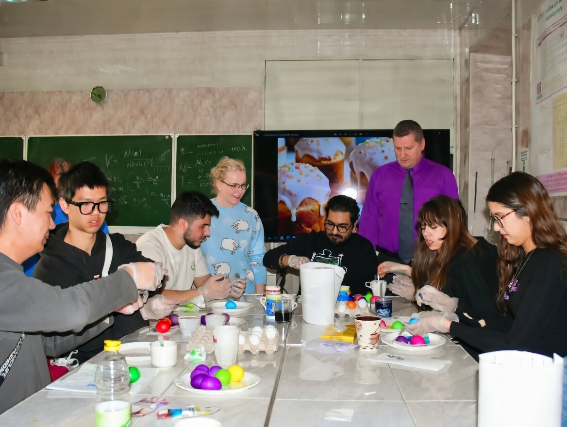 11 апреля иностранные студенты из Индии, Китая, Марокко и Ирана познакомились с традициями главного православного праздника России. Здесь нашлось место и знаниям, и веселью — ровно, как и должно быть в настоящий праздник! Участники узнали об истории Пасхи, покрасили яйца, освоили правила игры в «битки» и продегустировали традиционный пасхальный кулич.