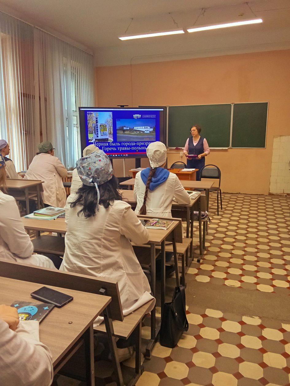 27 апреля 2026 г. состоялся кураторский час для студентов «Черная быль города-призрака. Горечь травы-полынь», приуроченный к памятной дате 26 апреля- дню памяти погибших в радиационных авариях и катастрофах и посвященный 40-й годовщине аварии на Чернобыльской АЭС.