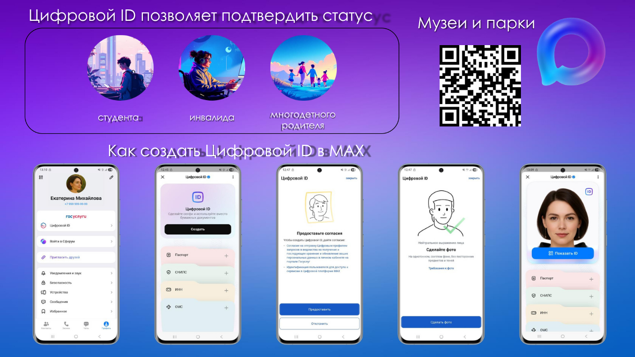 Комитет по культуре Санкт-Петербурга сообщает о возможностях применения многофункционального сервиса обмена информацией — Цифрового ID «Макс» — при посещении государственных учреждений культуры города (музеев и парков).